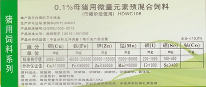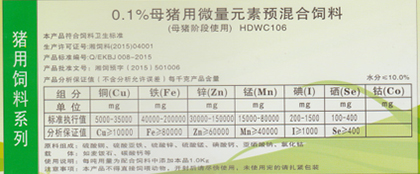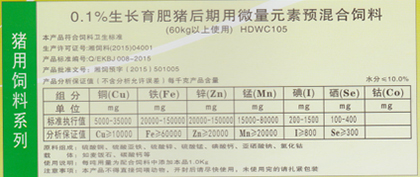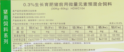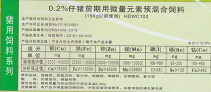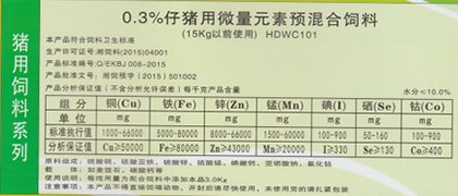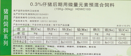 向后:0.3%仔豬前期用微量元素預(yù)混合飼料